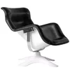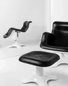 The Karuselli Lounge Chair, designed by Yrjö Kukkapuro in 1964, is an icon of Finnish design that combines function, ergonomics and organic form. To achieve the optimal dimensions, Kukkapuro spent several years sculpting the chair, wrapping himself in wire mesh and creating a plaster cast of his own body in a relaxed position. The frame is made of white fibreglass with chrome-plated steel details, while the seat is upholstered in black or white leather, offering exceptional comfort. Equipped with a swivel mechanism, the Karuselli is recognised for its distinctive design and unrivalled comfort.