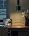 The A110 pendant lamp, nicknamed "Hand Grenade" for its shape, was designed by Alvar Aalto in 1952 for Artek. Made of lacquered steel with an internal ring, it emits direct and indirect light, creating a halo effect thanks to the perforated ring that reduces glare. Available in different finishes, it adds a touch of elegance to any room.