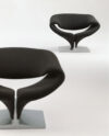 The Ribbon Chair with Ottoman, designed by Pierre Paulin in 1966 for Artifort, is an icon of modern design and is part of the permanent collection of the Museum of Modern Art in New York. Its sculptural shape, inspired by a fluid ribbon, offers an ergonomic and enveloping seat. Made with a tubular steel frame, latex foam and elastic fabric upholstery, it is supported by a lacquered wooden base.
