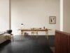 The CH327 dining table, designed by Hans J. Wegner in 1962, is an example of design that combines creativity and craftsmanship. Made of solid wood, it features softened edges and rounded legs that taper towards the floor. The grain of the wood follows the length of the tabletop, giving it a harmonious look.