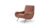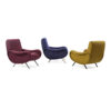 The Lady Chair, designed by Marco Zanuso in 1951 for Arflex, is an icon of Italian design of the 1950s. Revolutionary for its time, it introduced the use of innovative materials such as polyurethane foam and elastic straps for padding, offering unprecedented comfort. Its structure features sinuous and enveloping lines, with a wide seat and curved armrests, supported by elegant metal legs. In 1951, the Lady Chair won the Gold Medal at the IX Triennale di Milano, consolidating its status as a symbol of stylistic and technological innovation.