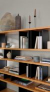 The Nuage collection, designed by Charlotte Perriand and produced by Cassina, is a modular system of bookcases and containers that combines functionality and aesthetics. The compositions range from sideboards to container furniture, to wall-mounted or self-supporting bookcases, with symmetrical or asymmetrical configurations. Accessories such as aluminum shelves, extractable drawers and sliding doors in various colors further enrich the compositional possibilities.