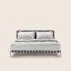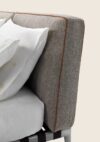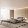 Gregory is a bed designed by Antonio Citterio for Flexform in 2020. Characterized by refined construction details, elegant finishes and a sophisticated mix of materials, it expresses high quality craftsmanship. Raised from the floor thanks to aluminum feet, the bed has a metal frame embellished with leather bands, available in tobacco, dark brown and black. The headboard, designed to offer maximum comfort and relaxation, can be covered in leather or fabric. Available in different finishes.