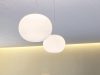 Suspension lamp providing diffused light. Diffuser consisting of an externally acid-etched, hand blown, flashed opaline glass. Transparent, injection molded polycarbonate diffuser support. 30% fiberglass reinforced injection-molded polyamide rose; pressed and galvanized ceiling fitting. Steel suspension cable.