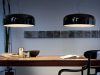Suspension lamp with direct light. Aluminium body. Available in gloss black,matt black, red, green, white or MUD. Injection-moulded opalescent methacrylate diffuser. Steel ceiling attachment with steel suspension cable