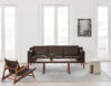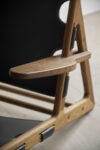 The Hunting Chair, created by Børge Mogensen in 1950, is a tribute to Scandinavian design that draws on the grandeur of the past. Its solid oak frame, accompanied by fine leather and brass buckles, tells a story of craftsmanship.