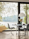Poul Kjærholm’s PK9 is a sculpture of pure design, an icon of sensuality and rigor. Its satin steel base opens like a stylised flower, supporting a seat that envelops the body with essential elegance. The soft and refined leather upholstery contrasts with the coldness of the metal, creating a dialogue between materials that is both bold and harmonious.