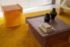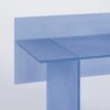 Designed by Patricia Urquiola for Glas Italia, the Simoon collection includes low tables, high tables, consoles and a writing desk, all made with UV-glued extralight glass sheets. The surface of each piece is enriched with a special Murano glass grit, ground and polished on the outside of the sheet. The collection is available in amethyst, light blue and topaz.
