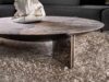 Henge’s Muse, designed by Isabella Genovese, is a perfect balance between strength and lightness. The legs in burnished steel or pale gold support a stone top, where unique veining tells the beauty of nature. An essential and sculptural coffee table, capable of giving character to any space with its refined presence.