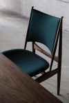 Design critics have described the Egyptian Chair as a striking fusion of ancient Egyptian design principles, modern aesthetics, and aerodynamics. The chair was first displayed in 1949 at the Cabinetmakers' Guild Exhibition in Copenhagen alongside the iconic Chieftain Chair, which shares some of the same characteristic details, such as the distinctive horns of the frame. The Egyptian Chair is characterized by its unique craftsmanship and it is upholstered by hand in Denmark in leather or textile. The frame is available in oak or walnut.