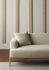 The A-S01 sofa, designed by Keiji Ashizawa for Karimoku Case, combines elegance and functionality with a solid oak frame and sculptural lines. Its low height amplifies the perception of space, while the multifunctional armrest also serves as a cushion, transforming it into a comfortable daybed.