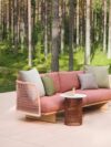 The Mesh sofa by Kettal, designed by Patricia Urquiola, is a play of light and matter, a dialogue between solidity and lightness. Its aluminum structure, inspired by architectural facades, filters the environment with elegance, while the teak feet add a touch of natural warmth. Soft cushions envelop the essential geometry, offering a refuge of comfort and sophisticated simplicity.