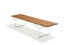 The Bertoia Bench, designed by Harry Bertoia in 1952 for Knoll, is an elegant fusion of minimalism and functionality. With a steel frame and a wooden slatted top, it anticipates the designer's sculptural explorations. Versatile and refined, it can be used both as a bench and as a coffee table, adapting naturally to any environment.
