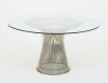 The Platner table by Knoll, designed by Warren Platner in 1966, is a functional sculpture, a play of light and structure. Its base, composed of thin intertwined metal rods, creates a fluid and dynamic effect, transforming the metal into a work of art. The elegantly suspended top completes the composition with lightness and refinement. A timeless icon, capable of giving character and harmony to any environment.