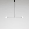 The Mobile Chandeliers are delicate structures balanced in perfect equilibrium. Constructed following the principles of a mobile, these are arrangements of linear tubes, geometric light sources, reflective surfaces and counterbalancing weights. The pieces rotate freely and delicately, creating an ever-changing lighting configuration unique to the space they occupy.