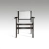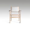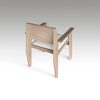 The Moramour chair by OKHA Studio stands out for its minimalist and structured design, with clean geometric lines. Made of dark wood, it features a padded seat and backrest, covered in light fabric, creating an elegant contrast. Its angular and solid shape is enriched by sophisticated details, making it perfect for contemporary and refined environments.