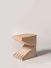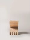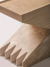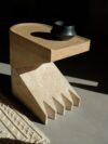 Sardinia has always enriched its iconography with zoomorphic and anthropomorphic references. Ambroise Maggiar was inspired by the clawed feet of the large wooden trunks that decorated the homes of wealthy Sardinian families. With *Mannu*, these feet become the focus of the study, a central element rather than a simple detail. The upper part is made of solid ash wood, with a finely hand-carved top by Karmine Piras. The base, machine-cut by CP Basalti, is in “marmo di Orosei”, a local marble with a creamy color, characterized by sediments that create vortices and droplets, often with shells trapped inside.