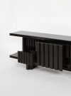 The Marino sideboard by Studio speziall stands out for its extruded ceramic structure with a glossy and raw black glaze. Its bold and architectural lines, combined with precise craftsmanship, express a minimalist and innovative aesthetic. Imposing in weight and presence, it is a piece with a strong visual impact.