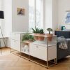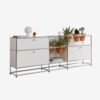 USM Haller storage units can be enhanced with plant accessories, transforming them into veritable green oases as well as storage spaces. The plant accessories include two plant pots and a watering set for each pot, designed for even watering. The USM Haller frames, with their metal panels and chrome-plated joints, offer a perfect combination of versatility and functionality.
