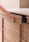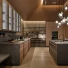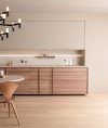 The Forma Mentis kitchen, designed by Gabriele Centazzo for Valcucine, on the occasion of Milan Design Week 2024, is enriched by the new Archigrafica handle. Presented with bases and handle in canaletto walnut, this kitchen exudes warmth and refinement thanks to the richness of the wood. The Bahama Blu granite countertop and backsplash add a touch of luxury and durability, with their deep hues and distinctive textures. To complete the design, the backlit walnut wall units are equipped with ribbed opaque glass doors, which create an interesting play of light and shadow. Available in different finishes.