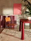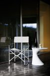 Designed in 1964 by the famous architect and designer Gae Aulenti, April is a comfortable and functional folding chair, inspired by the traditional "director's chair". Its stainless steel frame is enriched by aluminum alloy joints, while the upholstery, available in Vip (also suitable for outdoor use), Telastrong or Cuoio 95 leather, is easily removable.