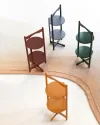 Il tavolino Florian, creato da Vico Magistretti nel 1989 e rimasterizzato dall'archivo nel 2021, combina semplicità e funzionalità. Ingegnosamente funzionale, Florian rappresenta la suprema semplicità di Magistretti, con un tavolo leggero costruito su una struttura pieghevole che si ripiega per essere appeso al muro come un oggetto grafico. Nella nuova versione di Francesco Meda e David Lopez Quincoces, è arricchito da un meccanismo in ottone e finiture laccate in tonalità moderne come giallo senape, verde scuro e rosso mattone, rendendolo ideale per la vita contemporanea.