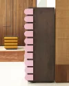La cassettiera Storet, disegnata da Nanda Vigo nel 1994 e rieditata nel 2020, incarna un design giocoso e sofisticato. Disponibile in versione alta con 10 cassetti o come comodino con 4, è realizzata in legno di frassino nero o noce tinto scuro, arricchita da cassetti laccati lucidi in una vasta gamma di colori contemporanei. Storet celebra la tradizione ebanista di Acerbis, unendo artigianalità e innovazione per un mobile iconico e versatile.
