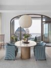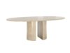 Il tavolo Dolmen, disegnato da Giulio Cappellini, reinterpreta la tradizione del marmo classico con influenze anni ‘80, attraverso un raffinato gioco di forme. Presenta un piano in marmo sostenuto da due basi semicircolari nello stesso materiale, che ne valorizzano l’estetica e la solidità. Nel 2024, la collezione si amplia con una nuova versione in cui le basi, ora a distanza fissa, garantiscono maggiore stabilità. Il Dolmen è disponibile in marmo bianco di Carrara, verde Alpi, nero Marquinia e travertino giallo paglierino chiaro