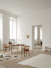 Il tavolo SH900 Extend, progettato dal duo Strand + Hvass nel 2007, rappresenta una nuova era del design danese moderno con la sua composizione minimalista e visivamente accattivante. Caratterizzato da linee pulite e solide, questo tavolo offre una perfetta combinazione di stile e stabilità. La sua innovativa struttura nasconde un sistema di estensione a scomparsa che consente un facile accesso a prolunghe integrate con una finitura nera.
