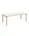 The Aalto 97 extendable table, designed by Alvar Aalto in 1956 for Artek, is a versatile solution for changing space requirements. Equipped with an extension leaf, this rectangular table can be easily extended to accommodate both small gatherings and larger dinner parties. The frame is made of solid Finnish birch, which gives the table a natural and warm beauty. The tabletop is available in birch veneer or high-pressure laminate (HPL), materials that age gracefully over time.