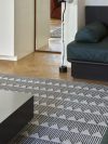 Plasterworks, a collection of rugs inspired by the triangle of patterns that decorate the Kaléo restaurant in Beirut designed by david/nicolas. The motif is spun out into multiple variations that feature soft lines, inventive color combinations and contrasting textures. Each hand sketched design is translated into an ultra-fine hand-knotted rug in Himalayan wool and silk.