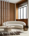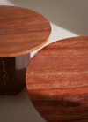 A coffee table with a sculptural shape that takes inspiration from ancient architecture. Designed by GamFratesi for GUBI, it is entirely made of travertine. The natural beauty of the grain and the vibrant texture of the top create details that characterize the product.
