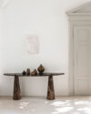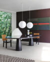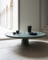 Il tavolo Eros, progettato da Angelo Mangiarotti per Agapecasa nel 1971, è un'icona del design in marmo. La sua struttura si basa su un innovativo sistema di incastri a gravità tra il piano e le gambe coniche, eliminando la necessità di giunzioni o elementi di fissaggio. Disponibile in varie forme e dimensioni, è realizzato in marmi pregiati e presenta aperture eleganti sui bordi e angoli del piano, che combinano estetica sofisticata e maggiore durabilità.