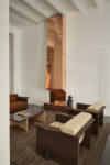 La collezione Edy di Christophe Delcourt si ispira all'estetica modernista, offrendo arredi scultorei e confortevoli che mettono in risalto l'arte dell'ebanisteria, elemento distintivo della Delcourt Collection. La struttura in massello di rovere affumicato spazzolato presenta forme semplici arricchite da dettagli raffinati, come braccioli scolpiti e linee curve. I sedili e gli schienali imbottiti sono rivestiti in tessuti dai toni terrosi, conferendo un aspetto naturale ed elegante.