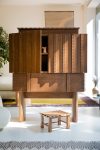 Ispirata alla tradizionale cassapanca sarda, Ancas è una credenza che ne reinterpreta lo spirito con un design scultoreo. Progettata da Chiara Andreatti e Pierpaolo Mandis, conserva elementi originali come il coperchio sollevabile, gli intagli in legno e la struttura massiccia. Realizzata in castagno e assemblata a mano, unisce artigianato e storia in una visione contemporanea.